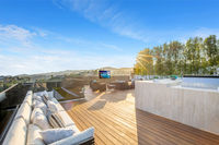 The estate features a seamless indoor-outdoor design, state-of-the-art chef’s kitchen, and an 80-foot infinity pool overlooking the city and ocean. Additional amenities include a rooftop lounge, home theater, gym, wine room, and resort-style outdoor spaces, making it the ultimate retreat. The primary suite is a private sanctuary with a wraparound deck, spa-inspired bath, and custom walk-in closet.
