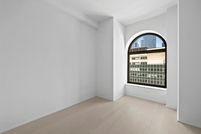 Residence 29E is a remarkable two-bedroom, two-and-a-half-bathroom home situated in a corner location. It features lofty 10-foot ceilings and oversized arched windows that fill the space with natural light. The interior design showcases exquisite details, including wide-plank white oak flooring and custom-designed oil rubbed bronze fixtures by the renowned Sir David Adjaye.