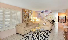 Fantastic interior location, no road noise. End unit with extra window and more light. one half block to the middle of famous El Paseo Drive. short walk to the 'Gardens' Tommy Bahama's Pacifica and Sullivans. 2 bedrooms and 2 baths upstairs and 1/4 bath down. Short Term rentals are ok. Property is offered furnished. Gated Courtyard entry with storage closet. close to the large 60' x 75' swimming pool & Jacuzzi. also includes 2 lighted tennis courts. Clubhouse , laundry room & mail box. 2 assigned parking spaces, one covered. Guest parking available. The HOA is only $400 per month. 44 units in this popular development.