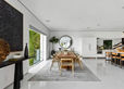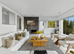 The outdoor area features an infinity pool, two flat grassy lawns, a fire pit, and a built-in BBQ, ideal for entertaining. The oversized lot offers potential for expansion, including an ADU or sports court. Additional amenities include a two-car garage and a private, street-to-street lot. Experience modern luxury living in the heart of the Hollywood Hills.